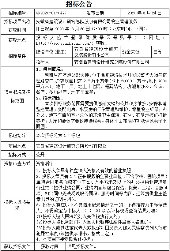 招標公告---安徽省建筑設計研究總院股份有限公司物業(yè)管理服務(wù)