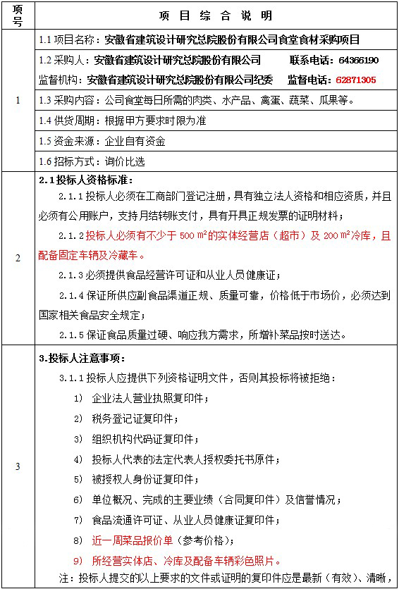 安徽省建筑設計研究總院股份有限公司食堂食材采購項目