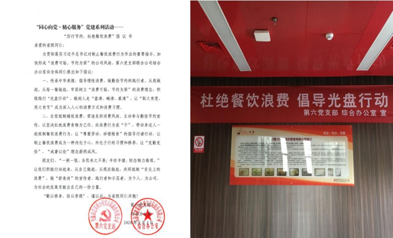 “同心向黨 精心服務(wù)”黨建系列活動(dòng)—— “厲行節約、杜絕餐飲浪費”第六黨支部在行動(dòng)