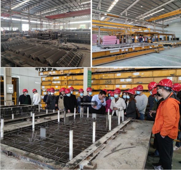 在遠大住工工作人員的陪同下,大家參觀(guān)了裝配式建筑構件生產(chǎn)工廠(chǎng),了解了裝配式墻、板的生產(chǎn)過(guò)程和質(zhì)量管理關(guān)鍵控制點(diǎn),明晰了正打反打等相關(guān)工藝的區別和應用部位。