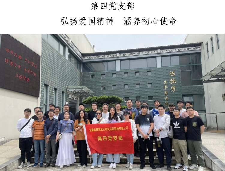 5月29日,第四黨支部組織黨員前往安慶開(kāi)展“紅色革命基地之安慶獨秀園-鄧稼先故居參觀(guān)學(xué)習”主題黨日活動(dòng),重溫革命先輩們艱苦卓絕的奮斗歷史,學(xué)習兩彈元勛們無(wú)私奉獻的愛(ài)國精神,達到學(xué)史明理、學(xué)史增信、學(xué)史崇德、學(xué)史力行的顯著(zhù)效果。