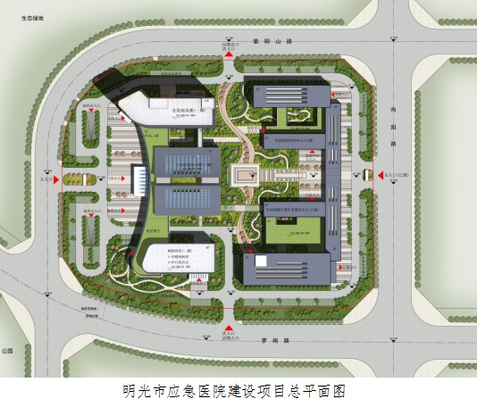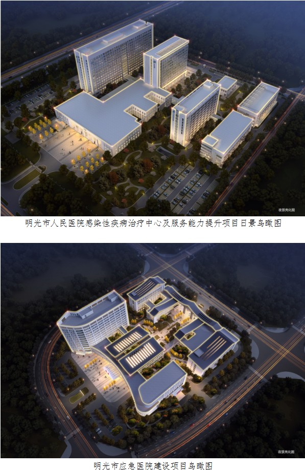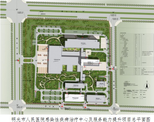 明光市應急醫院建設項目位于向陽(yáng)路與羅崗路交口,占地約58畝。項目為醫院的改擴建工程,新建建筑面積約50299平方米,包括住院病房樓、門(mén)診醫技樓、精神病科樓等。