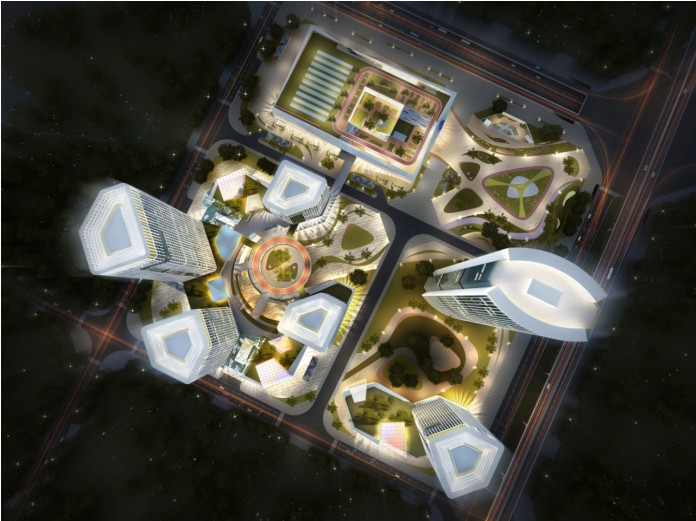 場(chǎng)地周邊居住區較多,如何吸引周邊以及全城的人流量聚集此處,項目設計團隊提出將廣場(chǎng)、會(huì )員超市、辦公商業(yè)打造為相輔相成、人流互動(dòng)的組團。打開(kāi)主干道交匯處廣場(chǎng)空間,以廣場(chǎng)為核心,形成會(huì )員超市動(dòng)線(xiàn)和商辦中心動(dòng)線(xiàn),商辦組團核心設置光電玻璃環(huán),充滿(mǎn)科技感的同時(shí)打造活力中心。既滿(mǎn)足人群超市購物、商場(chǎng)消費的目的性需求,又滿(mǎn)足日常休閑、娛樂(lè )的隨機性可能。