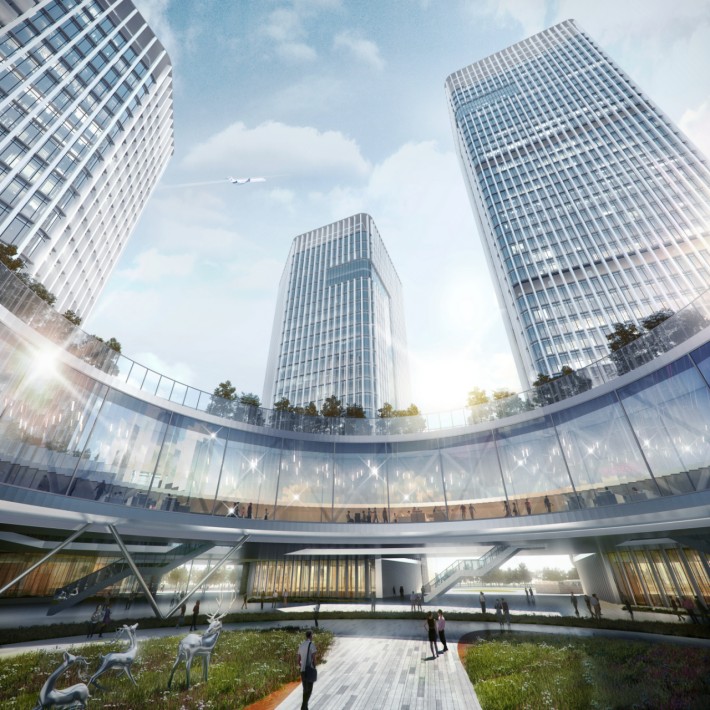 辦公高層組團天際線(xiàn)結合現狀“文峰中心”設計,打造“輕盈現代、時(shí)尚簡(jiǎn)約、活力動(dòng)感”的建筑組團。建筑以豎向線(xiàn)條為主體,避免繁復裝飾,營(yíng)造出輕盈、現代的主體形象,運用較多的落地窗,使得建筑更為時(shí)尚簡(jiǎn)約凸顯建筑群和諧氛圍,跳躍變化的豎向材質(zhì),為建筑營(yíng)造出動(dòng)感活力的氣息。