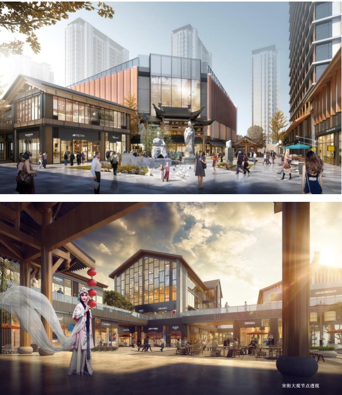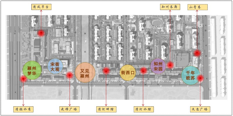 清河宋街設計方案突破“時(shí)間”和“空間”的雙重限制,融合新潮鮮活與千年宋韻,打破原區域封閉、內斂的城市形象,形成開(kāi)放、國際、潮流的新型休閑活力商業(yè)空間,再現千年潁州的璀璨繁華。