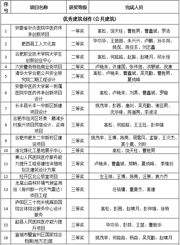 2021年9月1日,安徽省土木建筑學(xué)會(huì )發(fā)布《關(guān)于安徽省土木建筑學(xué)會(huì )第四屆創(chuàng )新獎獲獎項目的公告》。公司在本次創(chuàng )新獎評選活動(dòng)中,共有41個(gè)項目榮獲各類(lèi)各等級獎項,其中優(yōu)秀建筑創(chuàng )作獎18項,專(zhuān)項獎23項。