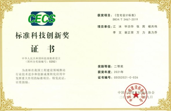 喜訊!公司主編的《住宅設計標準》榮獲中國工程建設標準化協(xié)會(huì )“標準科技創(chuàng )新獎”二等獎!