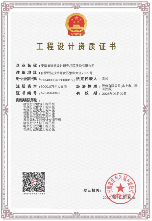 近日,安徽省住房和城鄉建設廳發(fā)布行政許可審批公告,公司順利通過(guò)市政行業(yè)道路工程甲級資質(zhì)審批,晉升為市政行業(yè)道路工程甲級設計單位。