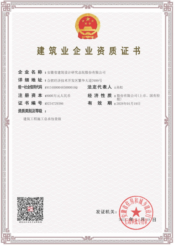 公司喜獲建筑工程施工總承包一級資質(zhì)