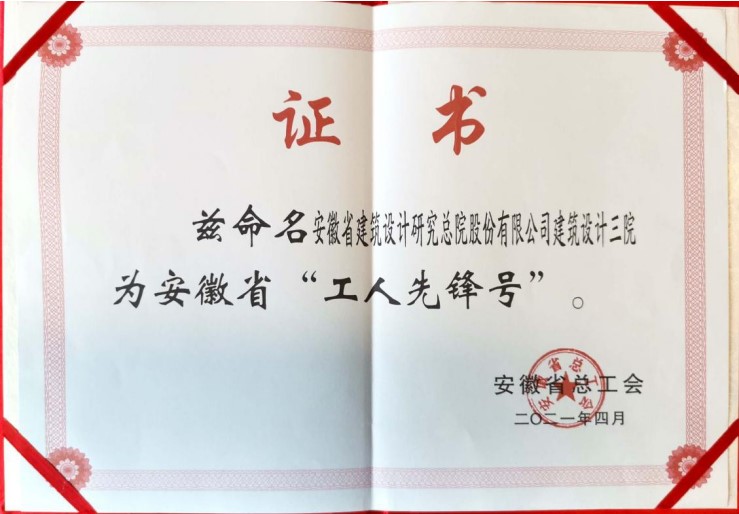 熱烈祝賀公司建筑設計三院榮獲安徽省“工人先鋒號”
